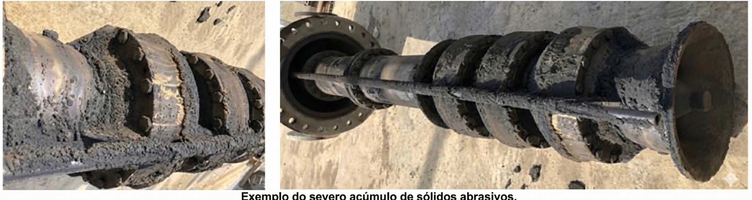 O segundo fator só piorou o primeiro: o fluido continha níveis inesperados de sólidos abrasivos vindos do reservatório. Isso não foi previsto durante o projeto.