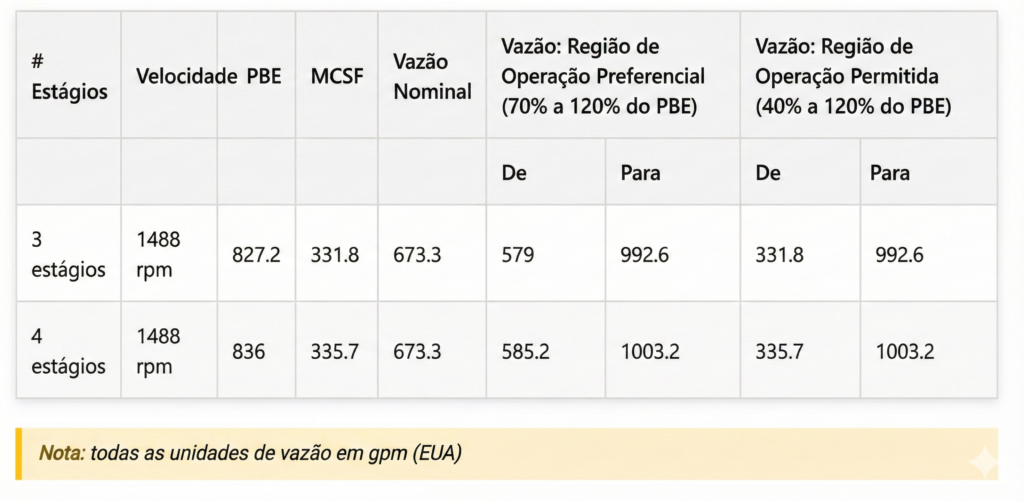 - Tipo: Centrífuga, multiestágio, suspensa verticalmente, carcaça dupla, design com difusor.