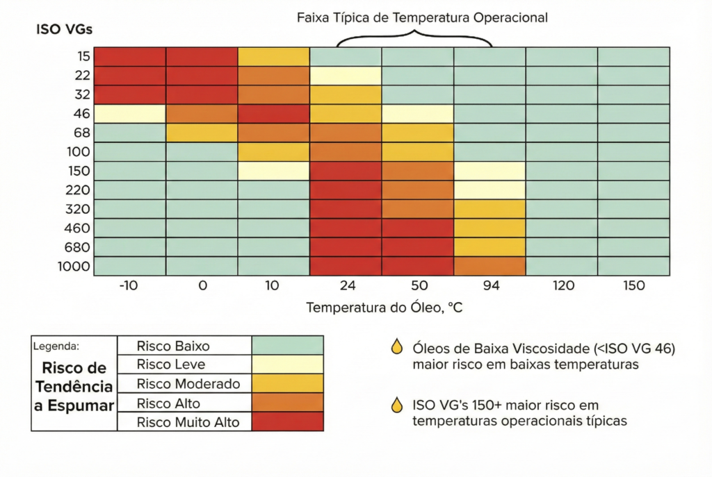 A condição se torna “viral” à medida que o calor elevado estimula a aeração e a espuma do óleo. Veja o gráfico na figura abaixo que mostra a relação entre o aumento da temperatura (induzido pelo baixo nível de óleo) e a tendência à espuma.